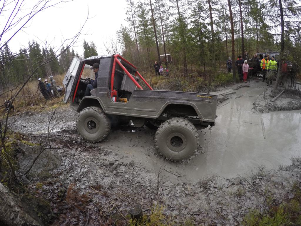 pari räpsyä sain otettua lauantailta. Oli reitit aika syviä ja kosteita. Gopro:n käyttöä alettu opettelemaan ja sain yhden klipin räpelletyä kauheella kiroamisella. https://youtu.be/_y6tYqhTnHc Sääliksi kävi Wagoneerin maskia kun puu sukelsi siitä sisään.