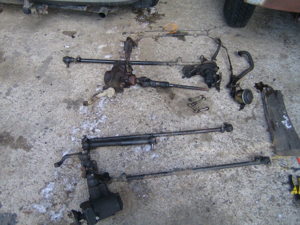 Seuraavaksi työn alle joutui ohjauksen osat. Slck:n sivuilta löytyi erinomaiset ohjeet ohjauksen toteuttamiseen, joten homma oli kohtuu helppo. Vanhat osat irti rungolta ja uudet osat paikoilleen. Saihan siinä pikkusen päätä raapia, että kaikki osat löysi tiensä paikoilleen, kun tilaa ei kuiteskaan liikaa ole. Ohjaustehostimen pumppu tuli melko lähelle etuakselia joten sisään joustoja piti hiukan rajoittaa. Tilttirattia en hyödyntänyt tällä kertaa, koska asennus olisi ollut työläämpi ja vakio ajoasento oli minulle ihan sopiva. Tehostimen letkut piti käydä teetättämässä uudet, kun vanhoja ei olisi järkevästi voinut hyödyntää.