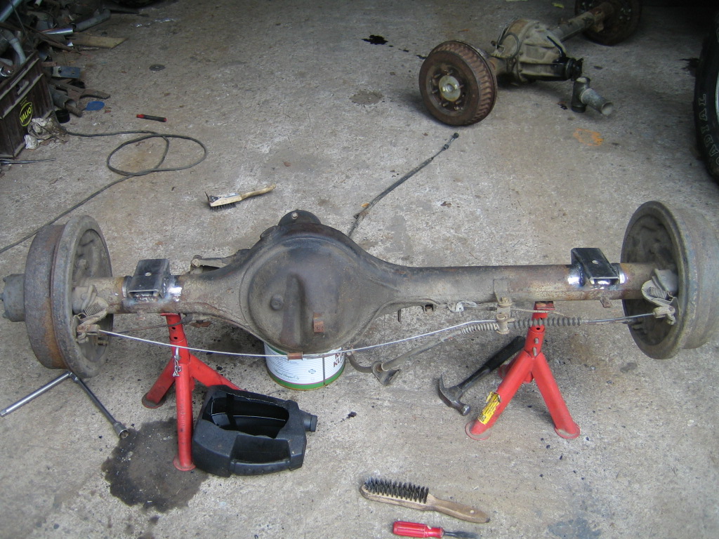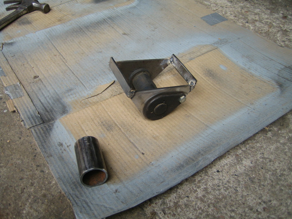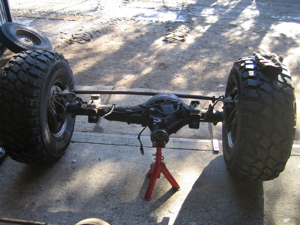 Takapään jousipakkojen riipukkeiden puslat tein 60:sen puslista joita piti rälläkällä hioa ulkopinnasta pienemmäksi. Pakkojen etupään kumeissa ei tuntunut välyksiä joten niille en tehnyt mitään. Iskareiksi valitsin tallin perukoilta jotkut käytetyt Bj:n iskarit joissa tuntui olevan mehut tallella. Eteen tais tulla Kyb:it ja taakse Biltema laatua ja mustaa maalia tuhautin päälle. Sitten ajoin auton ristiriipuntaan ja mitan kanssa tutkailin sisään- ja ulosjoustoja. Akseleiden pään kiinnityksiä muokkasin sen verran että iskareiden liikevarat tuli hyödynnettyä mahdollisimman tarkasti. Takaa puuttui pohjaanlyöntikumit ja 60:sen keulasta löysin sopivat, jotka pienellä vaivalla sai laitettua paikoilleen. Mitään hipo joustoja ei ollut tarkoitus tehdä, mutta löyty näillä muutoksilla varmaan muutama sentti lisää joustoja.