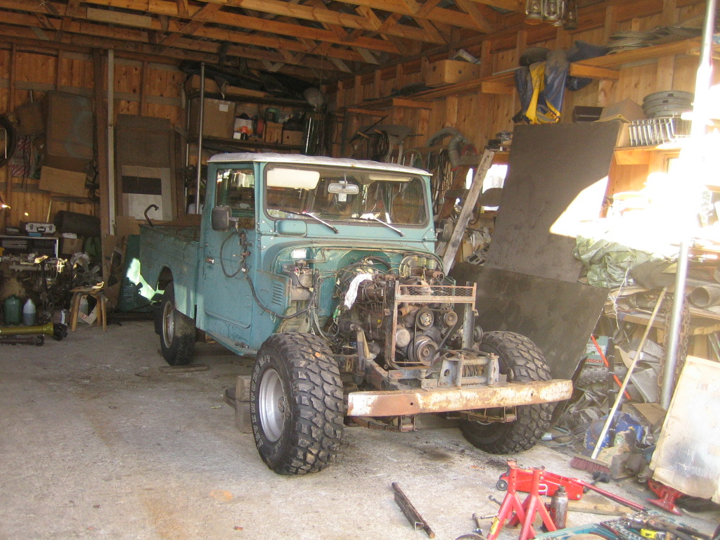 No sitten kun sain nuot molemmat möhkäleet tuohon tallin lattialle vierekkäin niin yllätys oli melkoinen kun hoksasin että moottorien lohkoissa oli identtiset paikat moottorin korvallisille. Uuden moottorin paikalleen heitto sitten ei ollutkaan mitään rakettitiedettä, vaikka aluksi olin varautunut uusien korvallisten tekoon. Edic:in moottori piti vaihtaa moottorista toiseen ja öljynpaine antureiden johdot piti jatkaa kuskin puolelta pelkääjän puolelle. Hehkujen ja laturin johdoille ei tarvinut tehdä muutoksia. Pakoputki piti tehdä uusiksi pakosarjan laipasta taaksepäin. Olihan tuossa tietenkin kaikkea pientä hommaa, mutta nuin se pääpiirteittään meni.