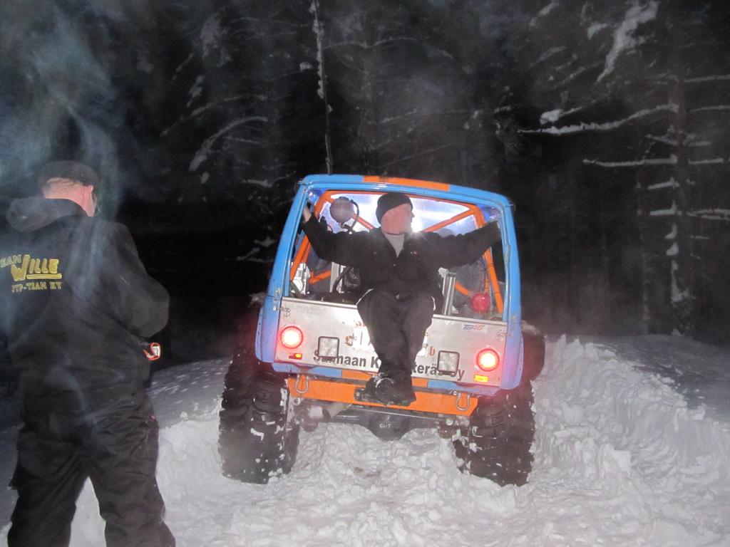 Kiristetty kitka lisäsi menohaluja yllättävän paljon ja lumi oli erittäin hyvin tamppautuvaa joten parin ekan auton jälkeen oli suht jämäkät raiteet mitä ajella. Parit vinssailut piti suorittaa jotta appari pysyy skarppina ![]() Ajeltiin ykkösen kautta kakkoseen (letkassa), missä oli valitettavasti kalustotappioita, vaihteistoa- rengasta ja murrosmureketta. Erittäin hyvä reissu, vehkeet toimi hienosti eikä autoissakaan ollut murheita . Eväätkin riitti vielä kotimatkalle Parit nitinä ja kolina jutut kun tsekkaa niin voi uutta safaria ruveta kattelemaan… t: Pikku-Runkkarin kippari |