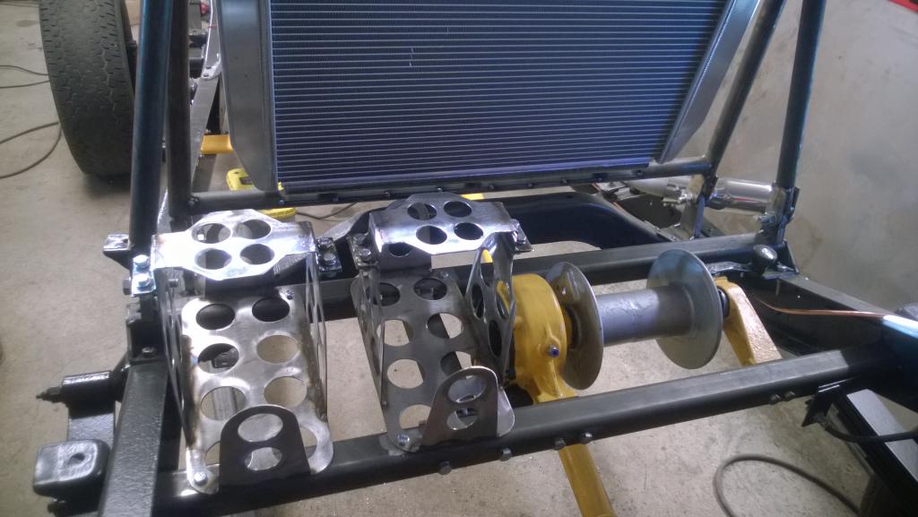 alaosan tuenta niin piti se ensiks suunnitella uusiks kumityynyjen varaan. Alaputkesta puolet pois, lattaa tilalle ja kumityynyt alatuen alle, nyt elää aika hyvin. Yläpuolen tuenta tuli tekastua vähän samalla tyylillä paitsi että kumityynyt pystyy kirraamaan yläputkeen erillisillä pulteilla niin tiukalle kuin tuntuu. Luulis pysyvän. Paisari löysi paikkansa syylärin takaa. Syylärin telineeseen tuli vielä viriteltyä tuollaset pellit sivuille, huomenna jos sais nuo rei'itettyä niin alkas oleen valmista. Maalia ei vielä viitti vetää pintaan kun pitää kattoa mitä tarvii putkien tuentaa varten hitsailla vielä tuohon. Akkujen kotelotkin tuli pultattua paikoilleen, enää ei puutu kuin maali pintaan. Jos sitä sais ens viikolla töitten jälkeen nuo telineen reiät tekastua ja vinssipedin puuttuvat reiät ja pultit paikoilleen niin pedin ja akkukotelot vois purkaa ja maalata. |