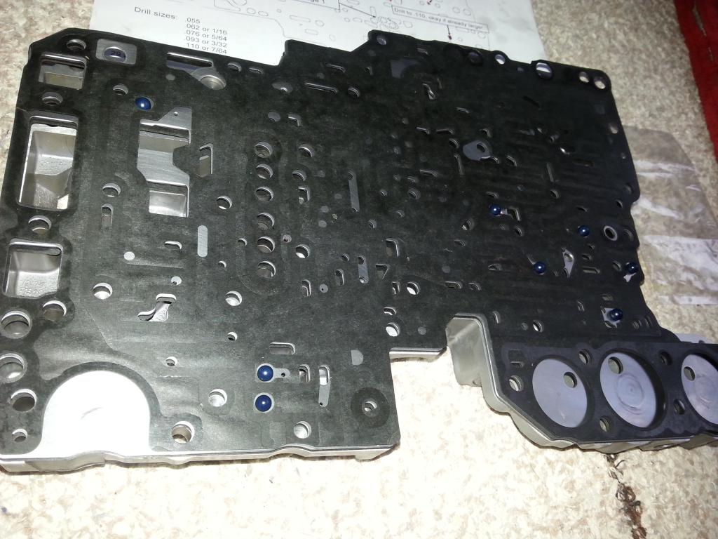gonna drill the middle plate and close it up till the cracking. i used toyota supra 7m-ge service specs as reference. jeep aw4 diagrams/specs didn't match on the valve body i have. |