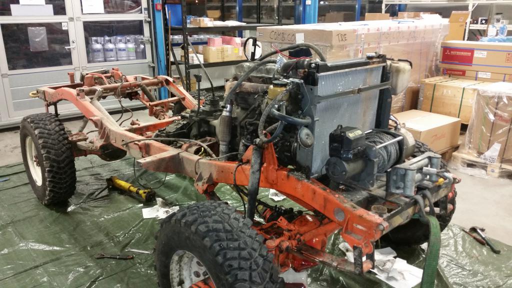 ![]() Moottoriksi valikoitui 12H-T sekä lukolliset HJ61 akselit näin alkuun. Koppa irti ja maalaukseen! Saa nähdä mitä väriä maalarin ruiskusta löytyy....