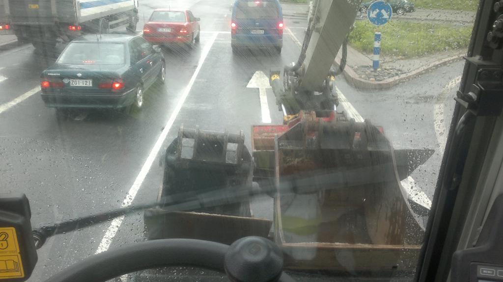 Välillä konehommista ja hakkeenajosta taukoa ja pikkupaikkojen siirtoa terminaaliin nupilla. Helppoa kun mikä, kaivurilla heitellä kamat kyytiin ja kiivetä auton koppiin ja hanaa