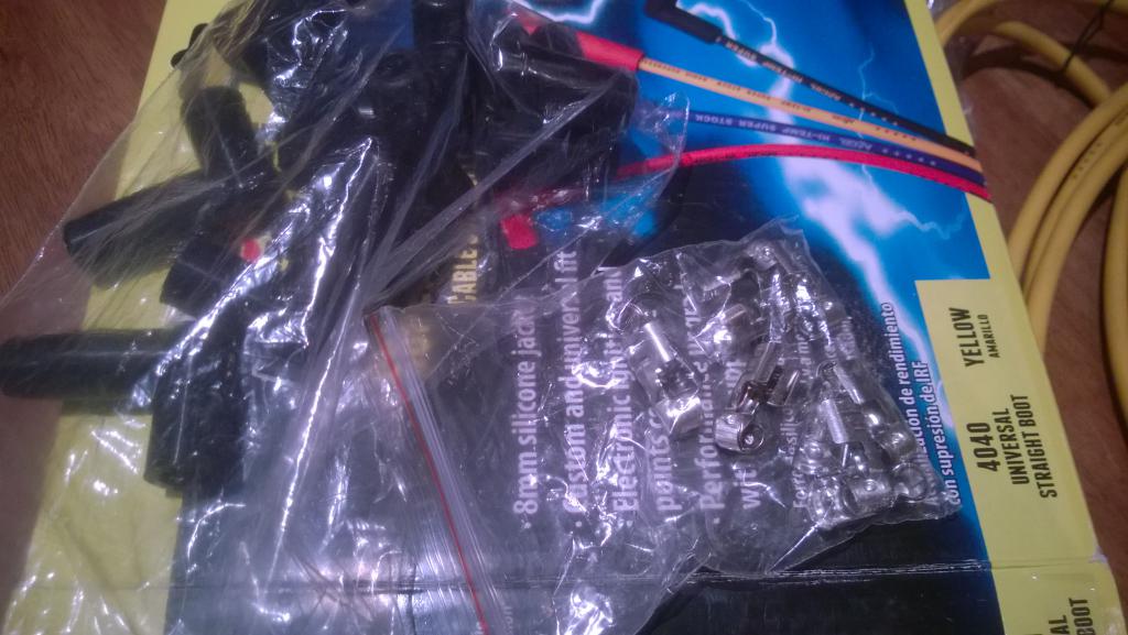 Nyt saa tehtyä semmoiset johdot kun haluaa. (kävin hakemassa Mparty:ltä nämä, ja A1Autoväristä 8mm silikoni/metalli johtosarjan) Nyt lattialla on Puolivalmiit tulpanjohdot suorilla päillä, ja noin 30kpl 90 asteen kulmassa olevaa liitintä... p.s Oulussa nuo kaikki Accel:n 7mm metallijohtoilla olevat 90 asteen kaapelisarjat (3009?) on tuolla ihmeellisellä suoralla puristusliittimellä, joka tulee tuon 90 asteen kulmakumin sisään.... (Tarviketorillakin oli k.o sarjaa) |