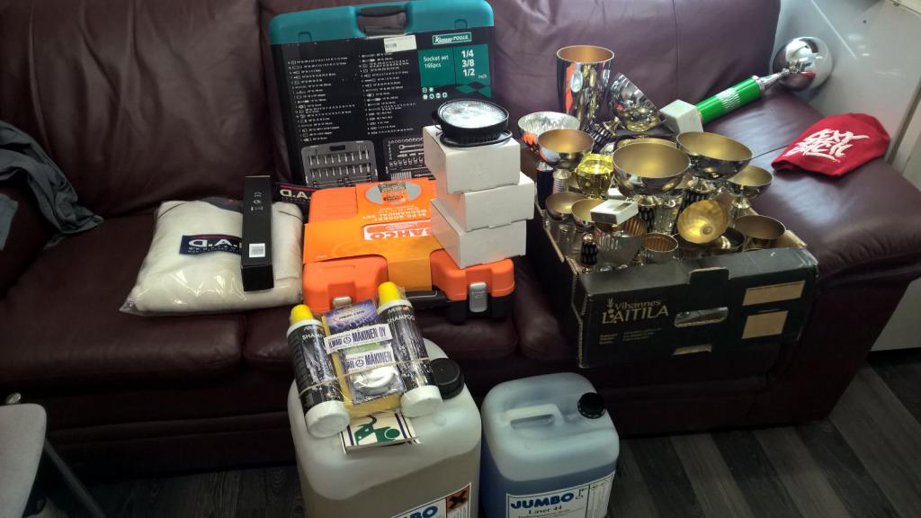 Kuvaa osasta palkintoja, hiukan lisää pitäisi olla tulossa.