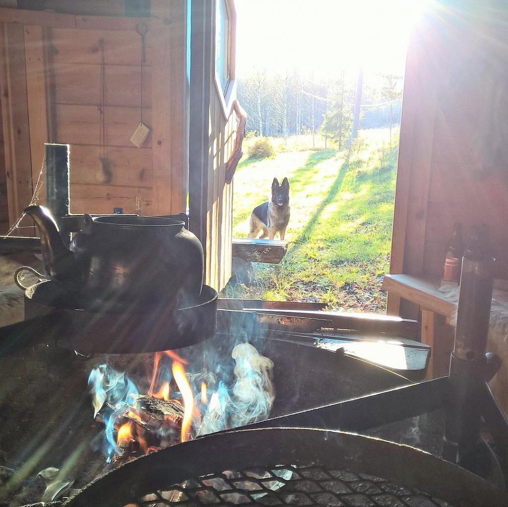 Lauantaina alko bertan hierominen maistua pakkelilta, joten otin koiran matkaan ja pyörähdin mökille kaffelle.