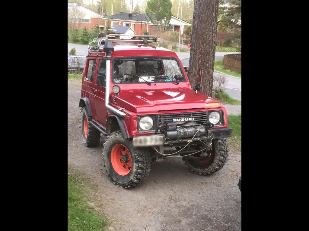 Suzuki 413.. 1,3l ruiskukoneella, 3" nostava alusta(puoli vuotta vanha) taka akselilla arb lukko, välitetty jakis, vinssi keulassa, panssarit perissä,tankilla ja jakolaatikolla..insa turbon special träkit alla 235/75r15..