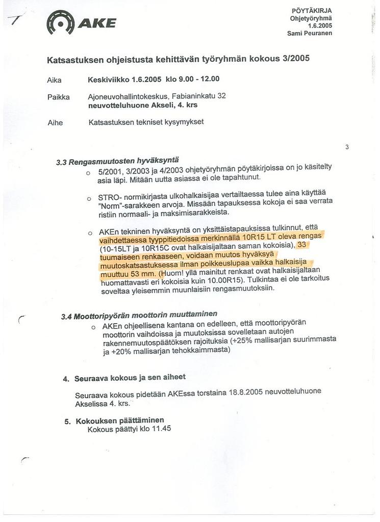 Moottorin jne Muutoskatsastuksessa mullekin sanoivat ettei ole