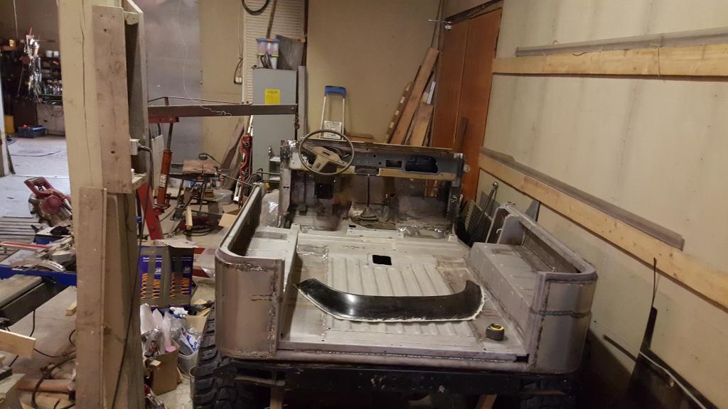 Pikkuhiljaa on taas tullut nakerreltua. Koppa on hiekkapuhallettu ja melkolailla jo hitsailtu. Seuraavaksi ohjelmassa on koneen ja vaihdelaatikon sovittaminen rungonpäälle, että pääsee ihmettelemään akselien asennot lopulliseen paikkaansa. Myös koppa on tarkoitus käyttää rungon päällä että pääsee poraamaan kiinnitysten uudet reijät sekä mallaamaan lasikuitukaaret kohdalleen. Kun mallailut on tehty,niin pääsee vielä hiekkapuhaltamaan pinnat , kittaaamaan ja maalaamaan. Samalla tulee varmaan luukut yms. puhallettu a ja maalattua. Koppaa hitsaillessa on sovitettu HJ61:n tehostettu kytkimen pääsylinteri ja hj:n jarrupääsylinteri. Samalla sovittelin HJ:n rattiakselin, jonka paikka oin vielä hieman viimeistelemättä.