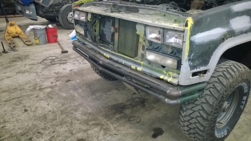 Kannattaa harkita jos tekis vähän enemmän jalalle tilaa puskurin päälle, mukavempi tehä huoltoja ku ei koko ajan jalka lipsu yli