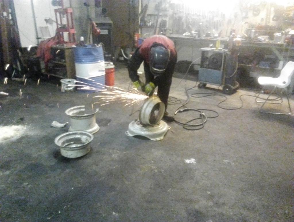 Tossa aurauskäskyä odotellessa nikkaroitiin pojan kanssa kahesta vanhasta vanteesta ja yhestä keskiöstä tommonen grilli.