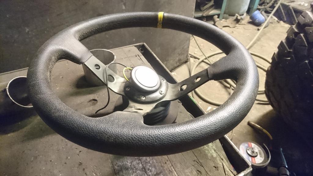 Ratille en raaskinu ostaa valmista keskiötä niin tein sen sitten vakioratista ja bemarin keskiössä. Ei mikään taideteos mutta menettelee. Vähän ehkä liian sylissä on nyt ratti mutta muokataan sitten joskus jos häirittee..