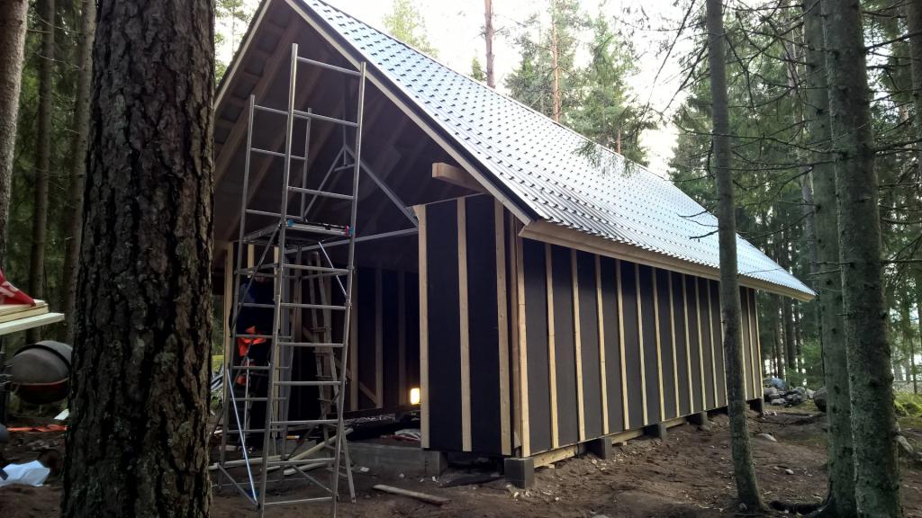 ![]() Viime viikolla tuli postissa läpivirtauslämmitin käyttövedelle. En meinaa laittaa erillistä lämminvesivaraajaa, vaan vesi lämmitetään 15 kW teholla lennossa. Tarkoituksena siis säästää sähköä kun vesivaraajan hukkalämpöä ei synny. ![]() Kiertovesipumppu tuli myös postissa jokunen viikko sitten. ![]() Sisälevytyksen kanssa pähkäilini että miten tuo betonisokkelin ja levyn reuna kannattaisi tehdä. Mulla kun tulee tuplalevyt, niin laitoin alemma kerroksen alajuoksun korkeudelle ja päällimmäinen tulee n. 25 mm ylemmäs. Päällimmäisen levyn alapuolelle tulee 15x35 mm höylätty rima, jonka alalaita tulee n. 10 mm alajuoksun alapinnan alapuolelle. Tuo väli on sitten vielä tarkoitus pistää jollain massalla täyteen alakautta. Puurima kestää paremmin kolhuja kuin kipsilevyn reuna, joten tarkoitus olisi että tällä tavalla levy pysyisi siistimmässä kunnossa ja että alajuoksun alta ei pääse viima puhaltamaan sisään. ![]() Iso ovi on asennettu paikalleen, mutta nostomekanismit puuttuvat vielä. Sisänurkkien saaminen kipinöiden kestäväksi ei myöskään ollut ihan suoraviivainen juttu. Joka pinnassa on kaksi levyä päällekäin ja meinasin että jos levyt laittaa nurkissa limittäin niin rälläkästä lentävät kipinäsuihkut pysähtyvät kipsilevyyn eivätkä pääse höyrynsulkumuoviin asti. Tiiviiksi saaminen ollut ihan helppoa, joten laitoin 50 mm alumiiniteippiä jokaiseen "särmään" ulomman ja sisemmän kipsilevyn väliin. Jos nyt ampuisin kipinäsuihkun nurkkaan, niin alumiiniteipin pitäisi ohjata kipinät joko kahden levyn väliin tai takaisin huonetilaan. Akryylimassa tulee vielä tietenkin päälle, ![]() |