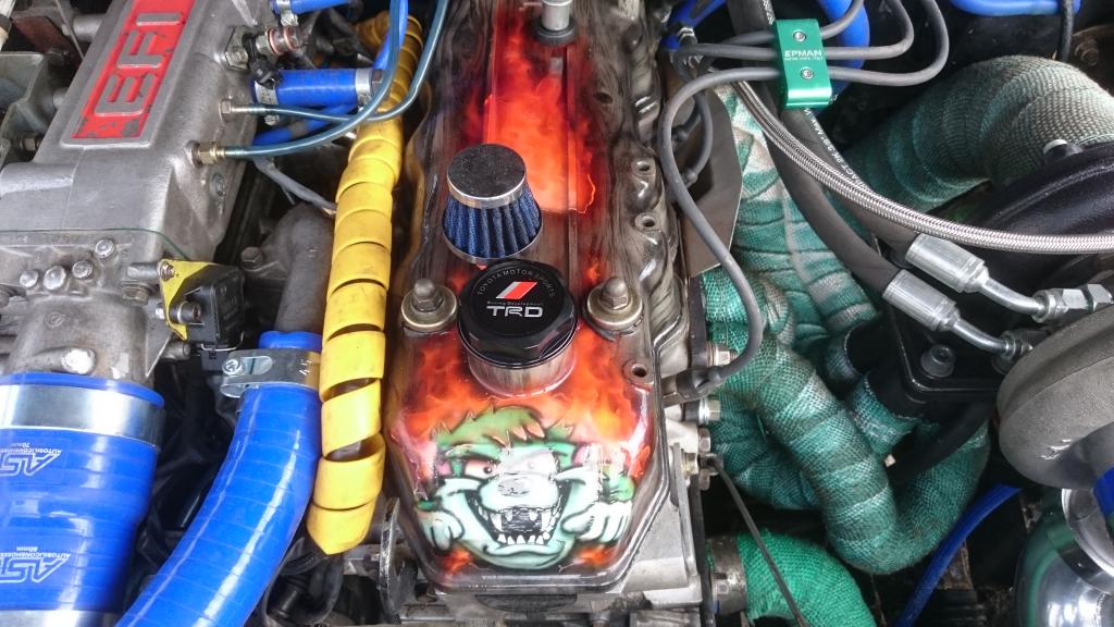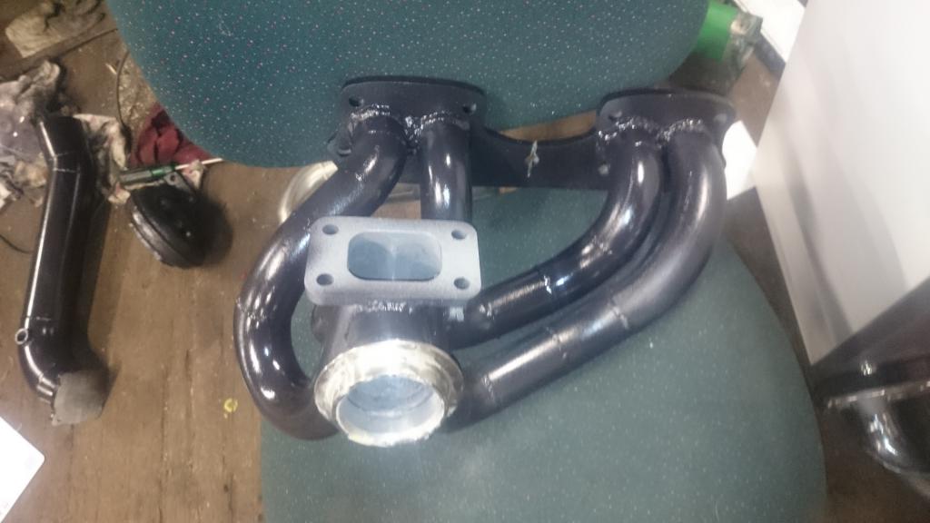 niin vaan tuli pakosarja tehtyä .. alku viikosta hiekka puhallus ja black satin lämpö maali pintaan . turbokin kääntyi niin päin kun sen kuuluu olla