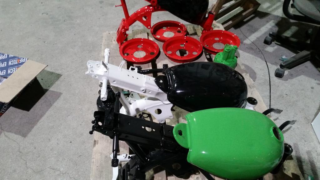 Kopan osat purettu ja nyt pitäis niitä alkaa hiekkapuhaltaan ja maalaamaan. Meinaa vaan tila loppua tallista kun kaikki levällään 😂