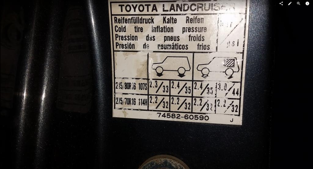 Max elleryn EP.T018 "Toyota Land Cruiser 1990-2007 70's/80's/100's series. Automotive repair manual" kirjassa on mainittu 7.50R16-6PRLT ja 275/85R16 koko.