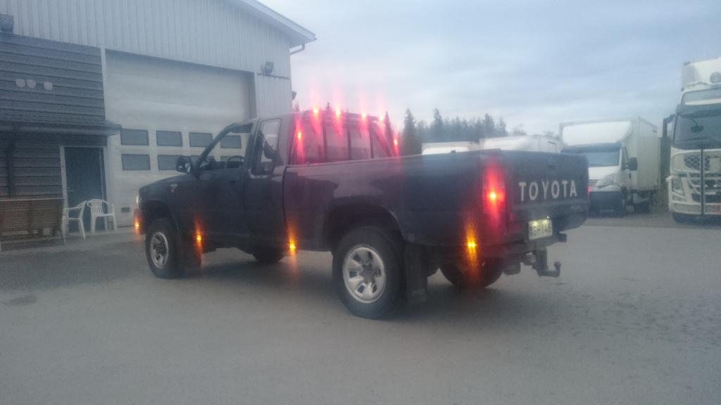 Käyttis Hiluxin laittoaMoro vaan kaikille! Tuli sitten liityttyä itsekin tähän maasturikansaan, kun emännällä piteni työmatka ja piti siten toinen auto laittaa itelle työmatkoihin ja sattumalta löytyi läheltä tuollainen kohtuukuntoinen LN110 -95 Hilux webastolla varustettuna ja siitähän tuli sitten kaupat tehtyä ![]() Tarkoituksena olisi pitää auto suht mukavana maantieajossa ym sekakäytössä, mutta pitäisi sillä hieman mehtäänkin päästä kunhan metästyskausi taas alakaa. Eli ei ainakaan vielä olla rakentamassa mitään HC-offipeliä Rakennellaan pikkuhiljaa, sipistellään sieltä täältä ja tehdään omaan silmään sopivaksi tätä autoa. Budjetti on pieni ja yritetään ite tehä mahollisimman palajon, mutta vermeet on hieman puutteelliset, kun pitää koittaa pieniä juttuja väkertää kerrostalon pihalla tai työpaikalla täydessä hallissa Ainut "hyvä" paikka on 175km päässä porukoiden tallissa, joten saa nähdä milloin auto on täysin valmis (liekkö koskaan _täysin_).Tältä se näytti ostohetkellä (kuvat napattu äkkiseltään myynti-ilmosta, kun ei tullut ite näpsittyä kuvaa uutukaisesta orkkiskunnossa). Ollu vuosia lapissa vanhalla miehellä ja auto on siistissä kunnossa kauttaaltaan, mitä nyt etulokarit on hieman hapettuneet ja pitäisi joko hommata kokonaan uudet tai sitten paikkailla vanhoja, kun apparin puolelta puuttuu jo pienehkö palanen. Pohjaltaan on kova, kuten lapin auton voisi olettaa olevankin. Autolla rullattu ostohetkellä 346tkm ja huoltoja tehty Rovaniemellä Toyota-liikkeessä aika reilusti. ![]() ![]() Ekaksi meni vaihtoon Toyotan alkuperäinen kasettimankka, joka vaihtui nykyaikaisempaan Alpine UTE-72BT ratioon niin saa työmatkoilla kuunnella humppaa. Tästä ei olekaan kuvia, kun pääsi aika monta ärräpäätä kojelautaa purkaessa, että sai koko ration irti ja uutta sovitettua tilalle. Samalla etukajarit vaihtui motonetistä hommattuihin hieman parempiin. Taakse myös väsätty väliaikaisesti kaiuttimet äänikuvaa parantamaan, niiden asennusta parannellaan ajan myötä, takaa löytyy myös pieni subbari. Seuraavaksi sitten tuli lisävalot keulille. Umpioiksi valikoituivat Bilteman 30€ lisärit, joita lämmittää LED parkit ja 55w xenonit, joille virtaa syöttää 110w ballastit ja luulisi nyt ladun valkenevan. ![]() Kesänakit alle ja muutama äärivalo kylykiin ja keulalle Vanteet tuli pestyä jollakin ärjy (?) nimisellä aineella ja irtoshan nuista aika paljon paskaa, liekkö koskaan aikasemmin pestykään. Vanteiden maalausta tullut mietittyä, mutta senkään aikataulusta ei ole tarkempaa tietoa.![]() Äitienpäiväviikonloppu meni porukoiden luona vapaita vietellessä ja samalla reissulla tuli lavakate heitettyä hiiteen auton päältä (jos jollain tarvetta rumalle, hieman rikkinäiselle katteelle, niin voidaan katella sille soppeli hinta?). Muuta ei oikein vielä tullut tehtyäkään. Kuvassa näkyy myös lokarin reikä, jolle pitäisi alkaa tekemään jotakin. ![]() Semmoinen se Hiluxi, Kuvat on huonoja kännykkäräpsyjä ja teksti on pikaisesti rustattuja luurilla/tabilla yleensä, joten pienet virheet voidaan antaa anteeksi. Pientä to-do/suunnitelmalistaa autolle: - karkeammat kumit vakiovanteille, minkä kokoiset menee ja minkälaista kuviota suosittelette seka-ajoon? Tullut kateltua Insa Rangeria - tekeekö tuolla mitään? - pientä korotusta mahdollisesti, neuvoja/vinkkejä ensikertalaiselle? samalla voisi harkita myös levikkeitä lokareihin (?) - lokarien paikkailua, miten kannattaisi nuo reiät paikata? Uudet lokarit vai kannattaako yrittää esim lasikuitua tms? Muita peltitöitä ei ainakaan vielä ole tiedossa, ellei sitten laske tähän paria kuprua, jotka tulleet lapin papalla johonkin peruuttaessa tjsp - eivät niin isoja kuitenkaan, että itteä haittaisi mehtä/työautossa - maalailua (lokarit, paikkamaalailua sinne tänne, vetokoukku ym) Suosituksia mistä kannattaa käydä kyselemässä automaalia värikoodilla Oulun seudulla? - parit äärivalot odottelee myös asennusta hytin taakse, asennetaan kunhan keretään - ikkunoiden tummennus - lähteekö tuosta takasivulasit miten helposti irti? Helpoin olisi tummentaa sisällä irtonaisena. Ja sitten sellainen, että miten pleksin voisi/kannattaisi tummentaa? Tänään lavakatetta irroittaessa tuli huomattua, että takalasi tässä on joskus vaihdettu pleksiin ![]() Sana on vapaa, vinkkejä/neuvoja ja ideoitakin otetaan vastaan. E: Kuvat tuli aika helv. isolla :s
