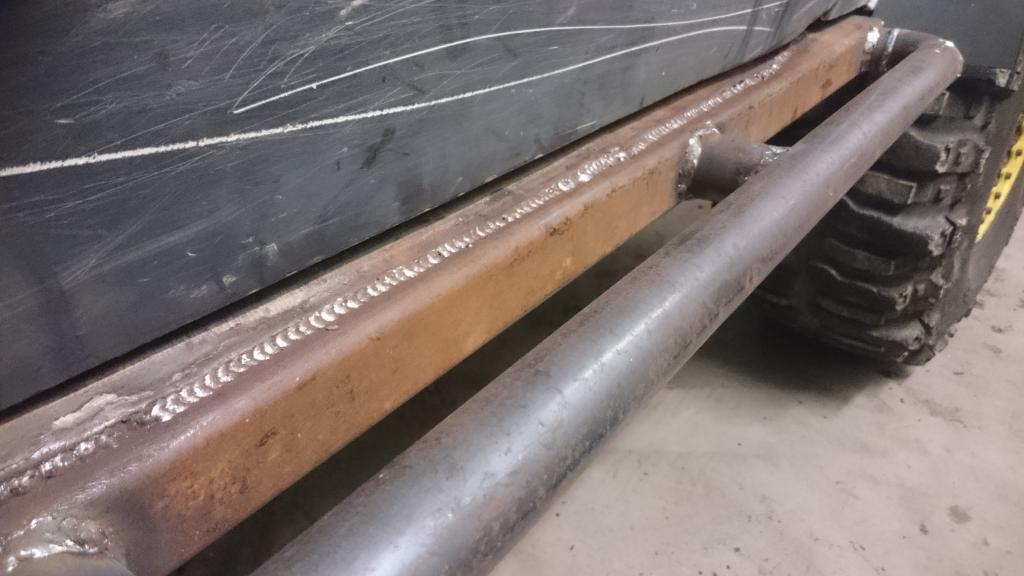 Helmapalkkeja aloittelin tekee, toinen puoli valmis. Piti siihen levike putkivielä laittaa kylkiä suojeleen. Myös taakse toinen levike hitsailtu. Ylimääräisiä sähköjä purin pari ämpärillistä ja muutin sähköt yks akku järjestelmäksi, yhdellä optimalla tulee vain auton omat sähköt. Tarkoitus olisi laittaa toinen laturi ja toinen akku konttiin eri piiriin, josta virta inventterille ja muille sähkö syöpöille laitteille.