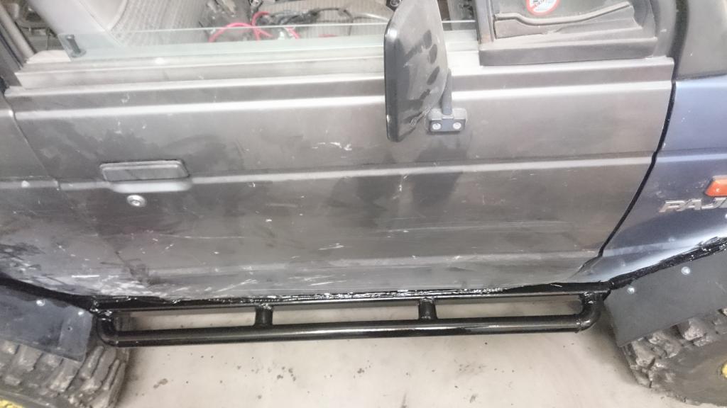 Hieno on pajero. Noissa maalauskuvissa on teipit etuvalojen yläpuolella, melkein kannattaisi harkita pieniä muovisoiroja niiden paikalle tai vaikka päiväajovalot? Nimittäin sen verran tuimistaa tuota ilmettä, että itse ainakin jotain tuninkia siihen lisäisin