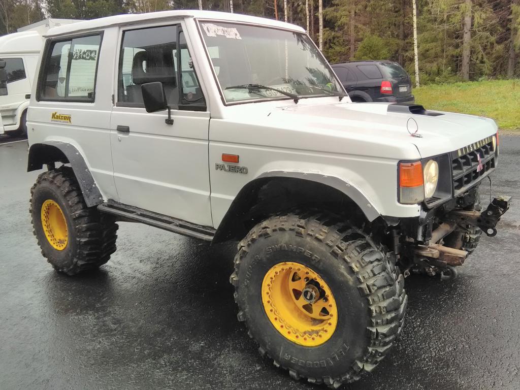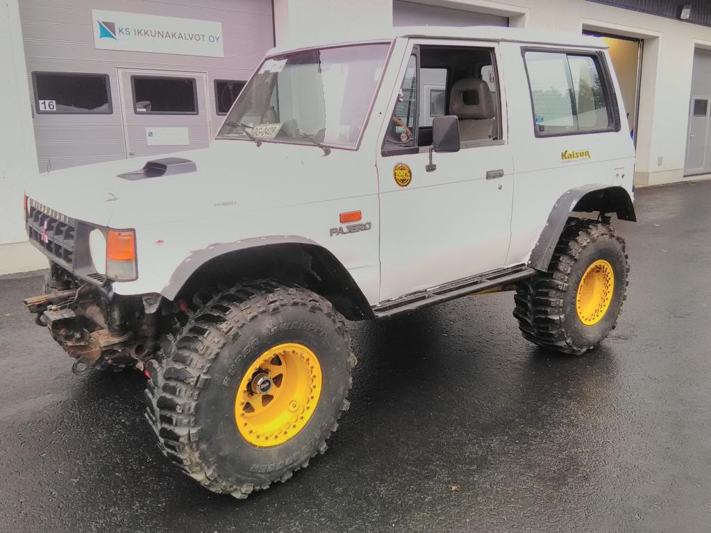 Hieno on pajero. Noissa maalauskuvissa on teipit etuvalojen yläpuolella, melkein kannattaisi harkita pieniä muovisoiroja niiden paikalle tai vaikka päiväajovalot? Nimittäin sen verran tuimistaa tuota ilmettä, että itse ainakin jotain tuninkia siihen lisäisin