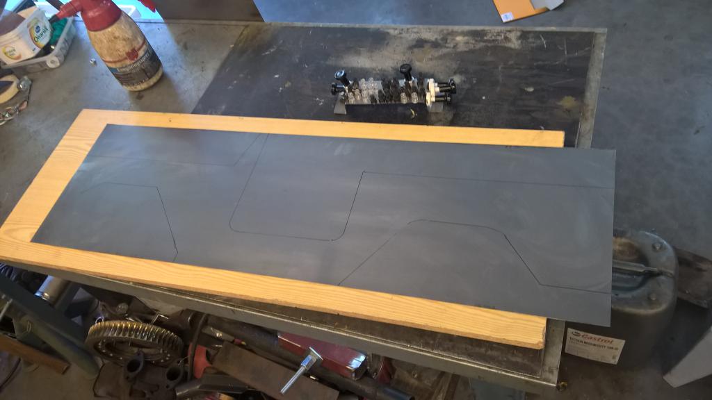 Vanha koulun piirtoheitin on loistava keksintö kun haetaan mittasuhteet kohdilleen. mitottamista riittää ennen kun hahmotelma on suoralla pellillä ja päästään naputtelemaan. Ensin kyljet ja reumatismiluukkua unohtamatta.