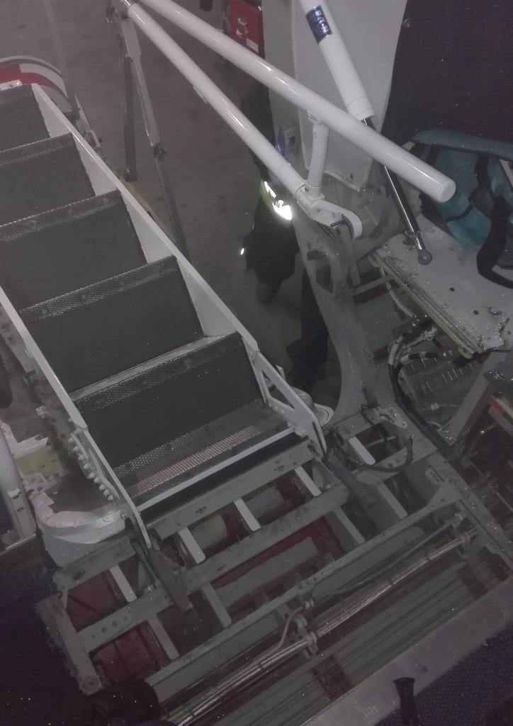 Tyypillinen lentokonehomma, varoitusvalo palaa, sitä käskyttää pari mikrokytkintä ovimekanismissa, tympeästi vaan niiden vaihtaminen vaati tässätapauksessa vähän enemmän työtä kun tarjolla olevat kytkimet käyvät vain ja ainoastaan "jälkeen muutostyö-mallin" ovimekanismiin. -> vähän enempi roipetta varastosta esiin, ovi kokonaan irti ja portaat pois ahistamasta. Huomenna ehkä asennellaan jos expertti on käyny mulkkaamassa mekanismin kondikseen. (tämäkin olisi voitu tehdä ite, oman hallin porukalla mutta kun nämä paikalliset ovat vähän arkoja tämmöiseen jos eivät ennen ole tehneet) Kateltiin, myös mannermaalta olevan, kollegan kans et mikäköhän tossa NIIN speciaalia on. Mut eipä otettu asiasta paiseita, tehdään niinkuin herrat määräilee.
