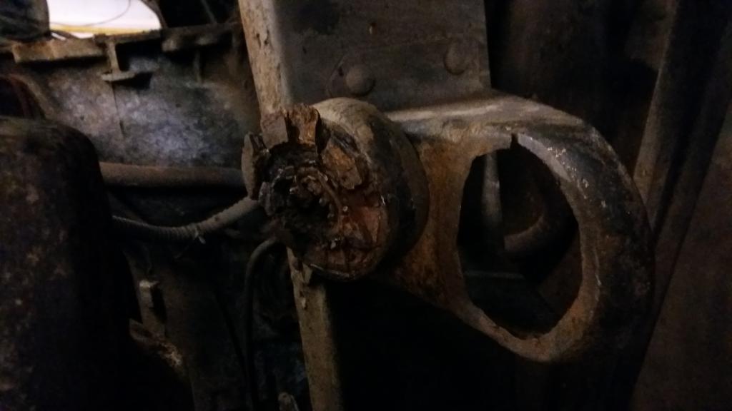 Hytti ja runko on aikoinaan yhdistetty pulteilla ja kumipuslilla. Joku (varmaan sama henkilö jolla pakkelia ja uretaania varastossa) on lisänny kumipuslien päälle 75mm korottavat palikat. Ihan kiva homma, mutta olisi voinut samalla vaikka pultit uusia ja ruosteita korjailla. Ei meinaan kovin paljon metallia puslien alta löytynyt ja pultit oli kaventuneet n 4mm paksuiksi. Tuossa kuosissa kun olisi kivikossa alkanut ryskäämään ni hytti olisi irronnut melko pian. Sähköliimalla uutta metallia, uudet pultit ja uudet kumipuslat ni kyllä se siitä.