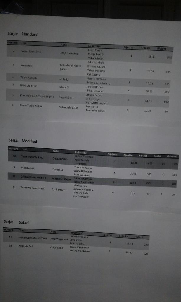 Team Kolibri 2 kans kiittää vielä näin myöhässä kisasta. Eilen saatiin pajeron kone nippuun ja ihme se kesti koko ajopäivän masinmäessä ( vetari ei ).