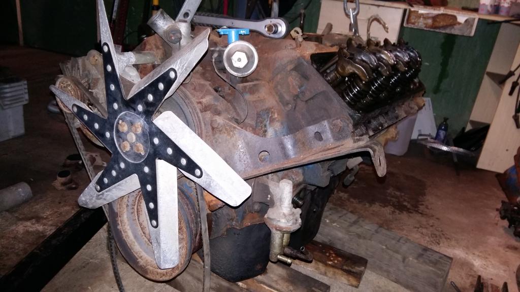 Konepellin alta löytyi 351 moottori niinkuin pitikin, mallia M, joka tarkoittaa että vaihdelaatikossa isolohkolle sopiva jako, nice... ikinä ei oo projektit lähtynyt lapasesta...