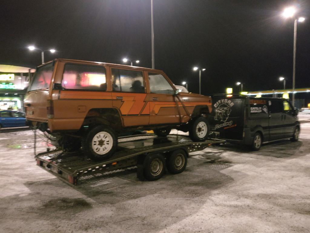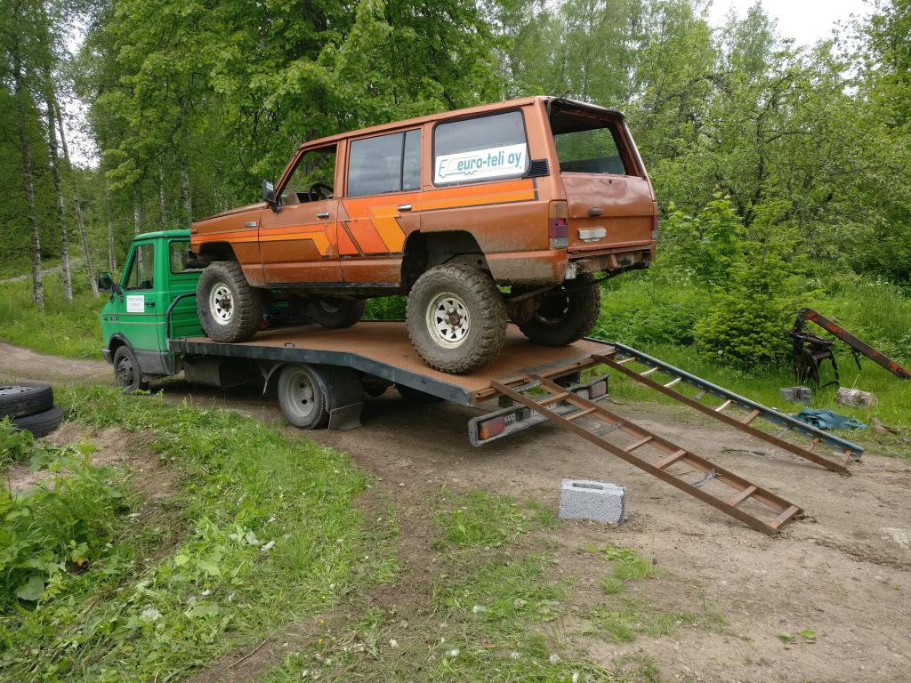 Datsun Patrol (katotaan mitä tulee...)tuli hommattua tollanen patrolli iltojen iloiksi tovi sitten, soa oli valmiina tehtynä ja sitä ollaan nyt rakennettu miten on ehitty. talliin sisälle yöksi sulamaan sulamaan seuraavana päivänä sisusta purettiin ja lattiamattojen alta löyty "yllätyksiä", ruostettahan tässä oli jalkatilat mutta muuten suht hyvässä kunnossa rungossa pari reikää ja ulkopelleiltään hyvä kuvia nyt turha laitella ruosteista enempää samalta näytti lattiat jokakohasta...pohja hitsuuteltiin ja sitten siirty ulkoruokintaan... moottorina tässä toimi volvon b30 joka sai lähtöpassit ja tilalle löyty sd33. vanha pois uus tilalle sopivasti sattu jollakin olemaan tarvetta vanhalle moottorille joten pakettiin ja kohti uutta omistajaa! auto ollut melkein parisen kuukautta joten piiiitkällä välillä rakenneltu ja kiirehän tällä ei ole, rakennetaan taas kun ehitään.