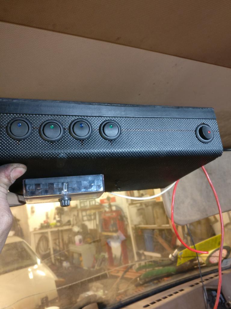 "sisustan kasausta tankin mallaamista paikallee, lähdöt pitäis saada järkevästi menemään ja todennäkösesti jonkun näkönen väliseinä tai plexi takapenkin taakse... päävirta katkasijakin löysi paikkansa vanhat sisustan osat tuli roudattua roskikseen lisävaloille katkasijoita jalkatiloihin ja helmaan aattelin kokeilla paljon kehuttua raptoria illalla kun kävi lenkittämässä mitsua niin alle kuukauden vanha apusimpukka sano sopimuksen irti... nopee kenttäkorjaus että sai tallille hinkutettuu |