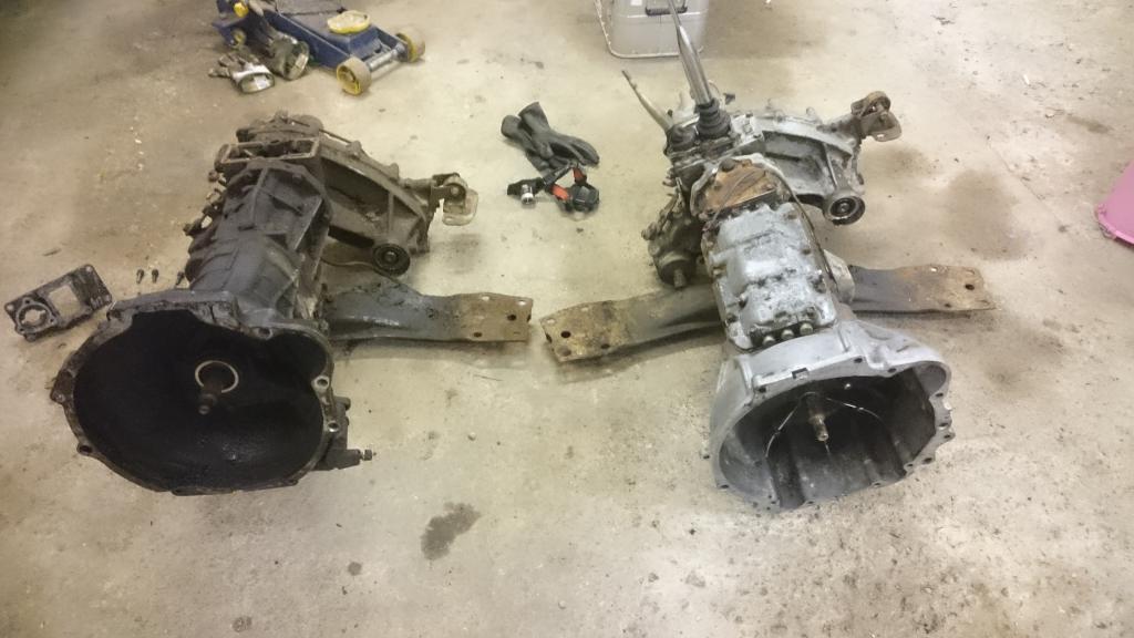 Kytkin on vielä matkalla suomeen. Stevat tuli joten pesin laatikosta enimmät kurat pois ja vaihdoin kardaanin lähtöjen stevat. Toinen oli ehjä, taka lähtö steva ei vaan jousi rengas oli poikki.