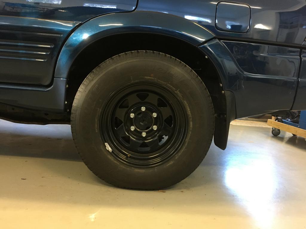 Tässä kuvassa nyt tilanne. Vanne 8x16 et-20. Rengas 245/70r16 bridgestone dueler. Tulee nätisti kaaren tasalle. Jako on tosiaan 6x139,7. En haluaisi isommalla et:llä olevaan vannettakaan laittaa koska tuo on niin nätisti nyt reunalla. Koteloissa on tilaa pellin puolesta kyllä sisällä mutta nuo muovit ovat ahtaalla. Kuitenkin olen lukenut että ihan vakioon mahtuisi nuo 31" ilman ihmeempiä. En haluaisi alkaa leikkailla mitään kun auto on ihan vimpan päälle tehty nyt muuten. Autolla ei mennä metsään, tämä on puhdasta ulkonäön hakemista. Korottaa on tarkoitus 2".