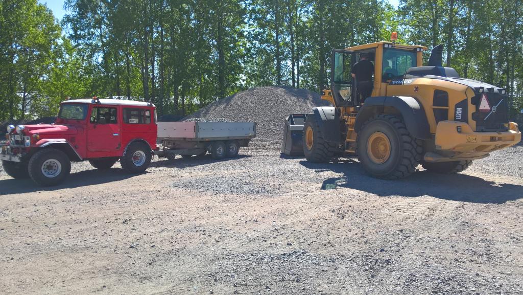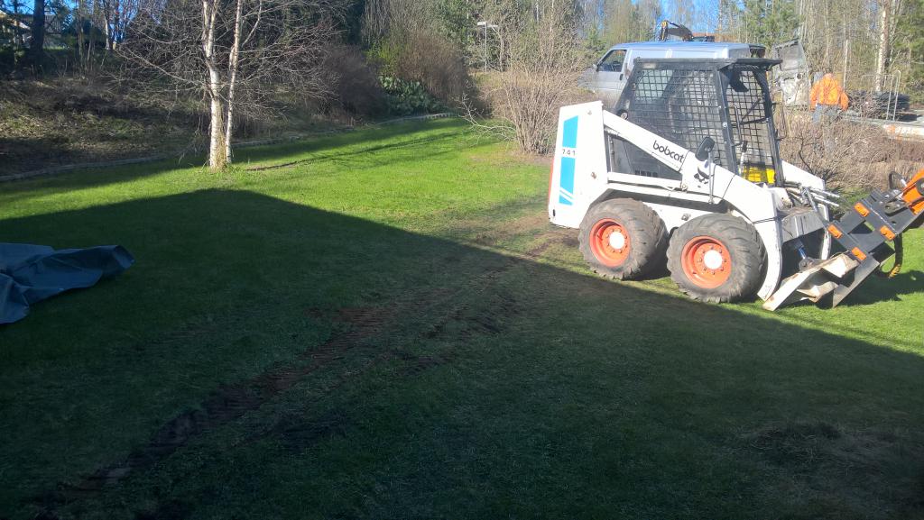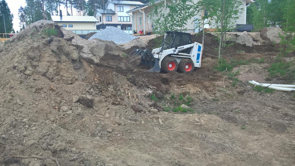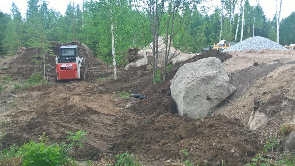 Kävin Katilla tekemässä pienet täyte maan levitykset/luiskaukset.. Valmiista ei tullu kuvaa kun hommat loppui ukkos kuuroon, ja jos ny joku joskus multaa levittäny niin arvata sopii kuinka kiire tulee pois kun alkaa satamaan...