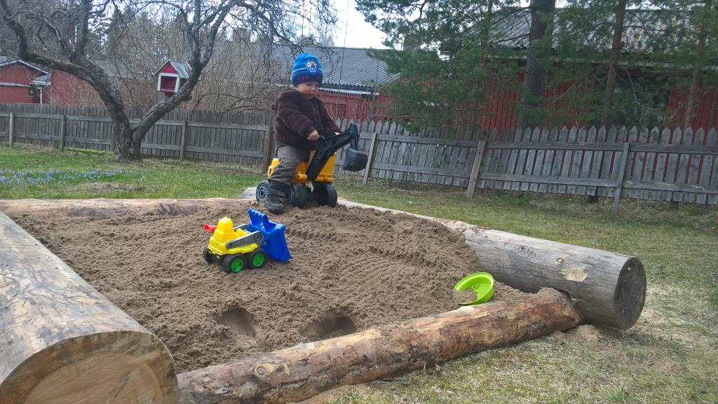 Hieno hiekkalaatikko tuli pojalle ja vielä saanu olla mukana rakentamassa niin varmasti kelpaa siinä touhuta!! iso peukku!!