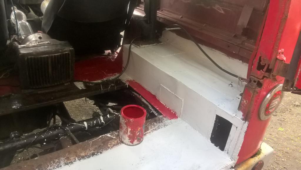 Tämän kertainen käänöpiste näytti tältä.... hieman venähti...No hieman esab liimaa, peltiä, ja pohjamaalia... Miranoolin jämät rötvättynä, ja lattia hepissöän. Fengsui nääts... Ja tuohon pisteeseen loppui valoisa aika ja saunakin lämpisi sopivasti... Vielä jäi askarettaettä olisi taas siisti mutta pääseepähän taas duuniin... Saako muuten millään selville maalin koostumusta? Tuokin on miranoolin mutta se on oma sekoitus ja ei tietenkään tullu resepti muistiin...