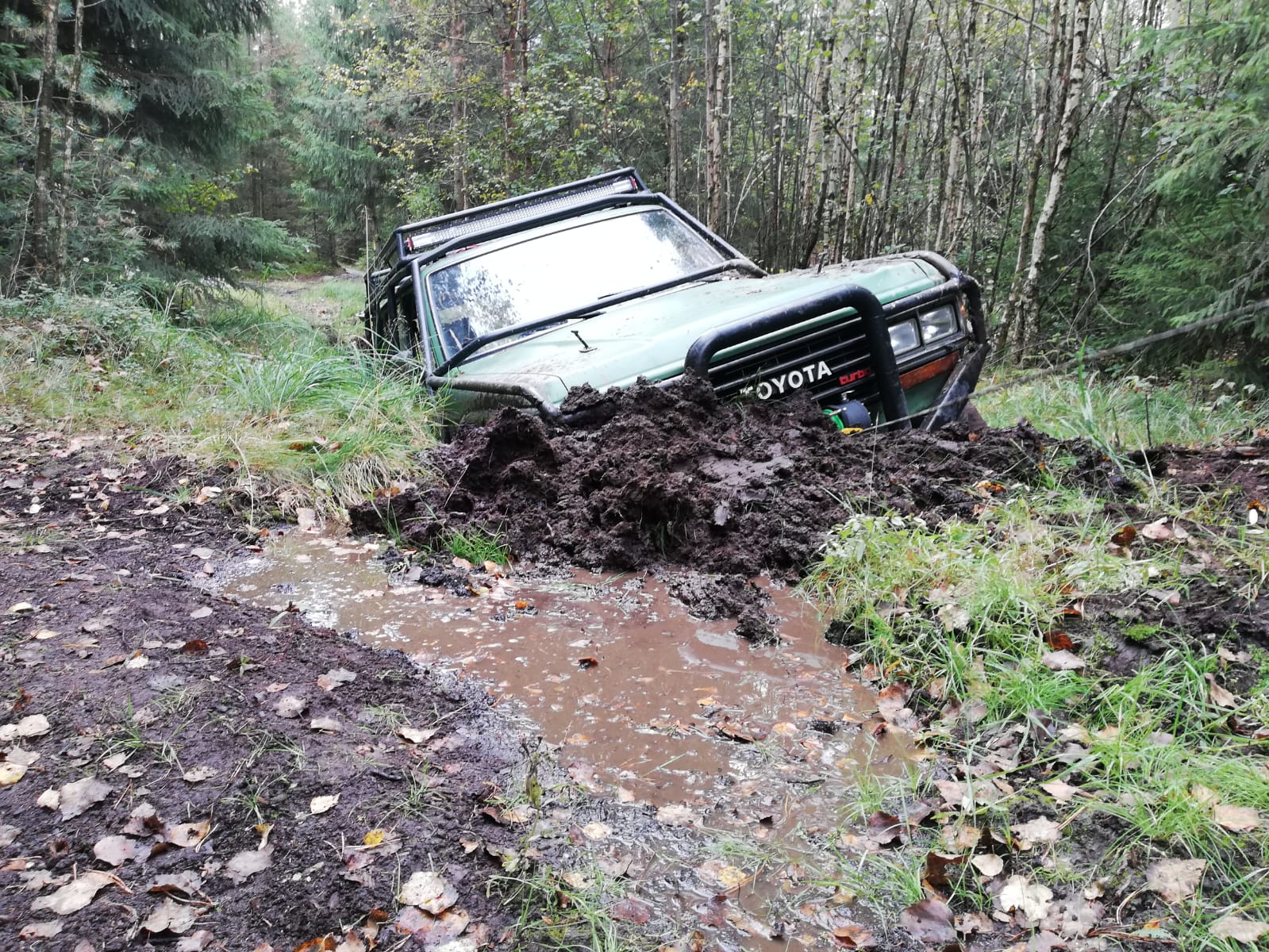 Kiitokset kaikille osallistuneille. Ajamassa oli 12 autokuntaa. Sää oli pääsääntöisesti aurinkoista / puolipilvistä, iltapäivällä sitten tuli muutama sadekuuro joista tuli vettä kuin saavista kaataen. Vettä on satanut elokuun alusta reilut 60 mm, mutta silti maasto on pinta maata lukuunottamatta sangen kuivaa, toki on paikkoja jotka ei kuivu koskaan ja edellä nähnyt kuvat on otettu yhdessä niistä. Kalustovaurioitakin tuli, pääsääntöisesti ne oli suhteellisen pieniä, poislukien kuvassa näkyvä etu akselin romahdus joka on saatu sunnuntain aikana korjattua ja auto pois metsästä. Tämä seurausta vetarin katkeamisesta ja sitä seuranneesta laakerin purkautumisesta. Seuraava ajopäivä on 6.10. Tervetuloa ajamaan tai katselemaan