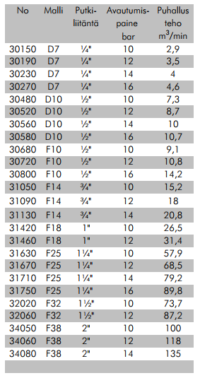 Jaa kyllä sitä saa taas tuntea ittensä idiootiksi, olis kait se pitäny tajuta ettiä joku virtaustaulukko noille varoventtiileille heti alkuun 1/2" liitännällä virtaa jo 7,3 m3/min minkä nyt luulis piisaavan.