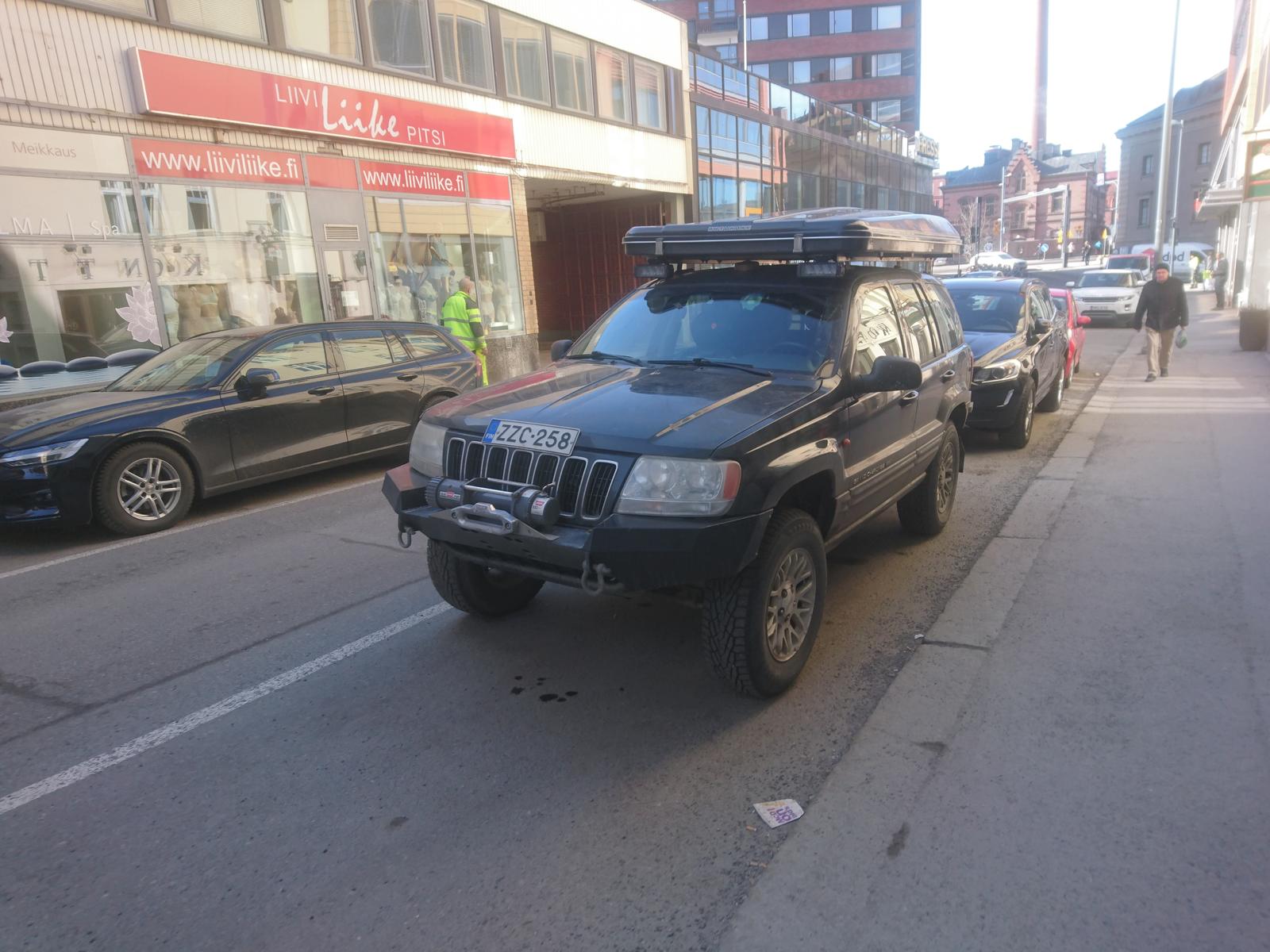 Just hetki sitten uusi (-19) sähkönsininen Jimny musta/hopeilla vanteilla Vihdintien valoissa. On se vain jännä kuinka se näyttää niin paljon nykyistä (tai siis vanhaa) isommalta...