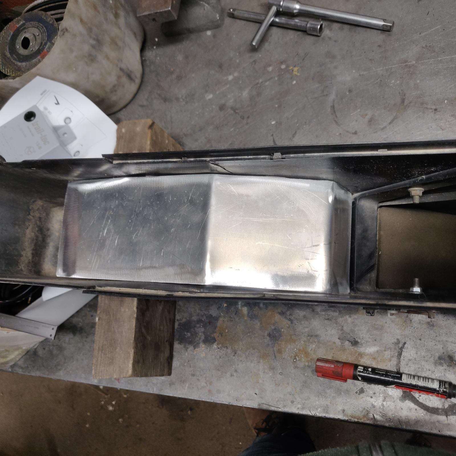 Eiliseen paikkaan vielä vahvike tehtaan mallin mukaan ja uudet pultit Tähän pitäisi varmaan uusi vaneri taikoa, vanha aika rapsakka.