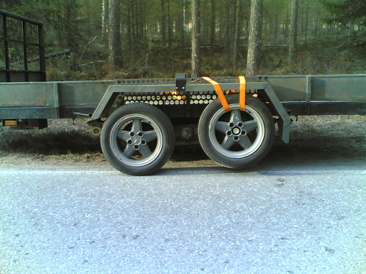 Mulla oli omavalmiste telikärry, jossa oli mersun levyjarrut. Ilmeisesti W114 tai W123 etujarruilla. Pyörännapa oli rälläköity poikki ja hitsattu telin palkkiin.