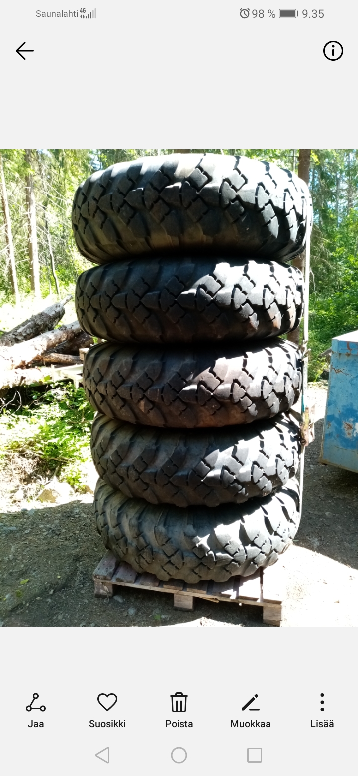 5kpl 15.00-21 renkaat vanteineen 1310mm leveys 405mm esim protoon 10 jako 800eMyyty Kuvan renkaat taitaa olla ajamattomat 5kpl vanteineen800e Renkaat kullaalla Myyty Viimeksi muokannut P78 : 25.10.2019 11:05 |