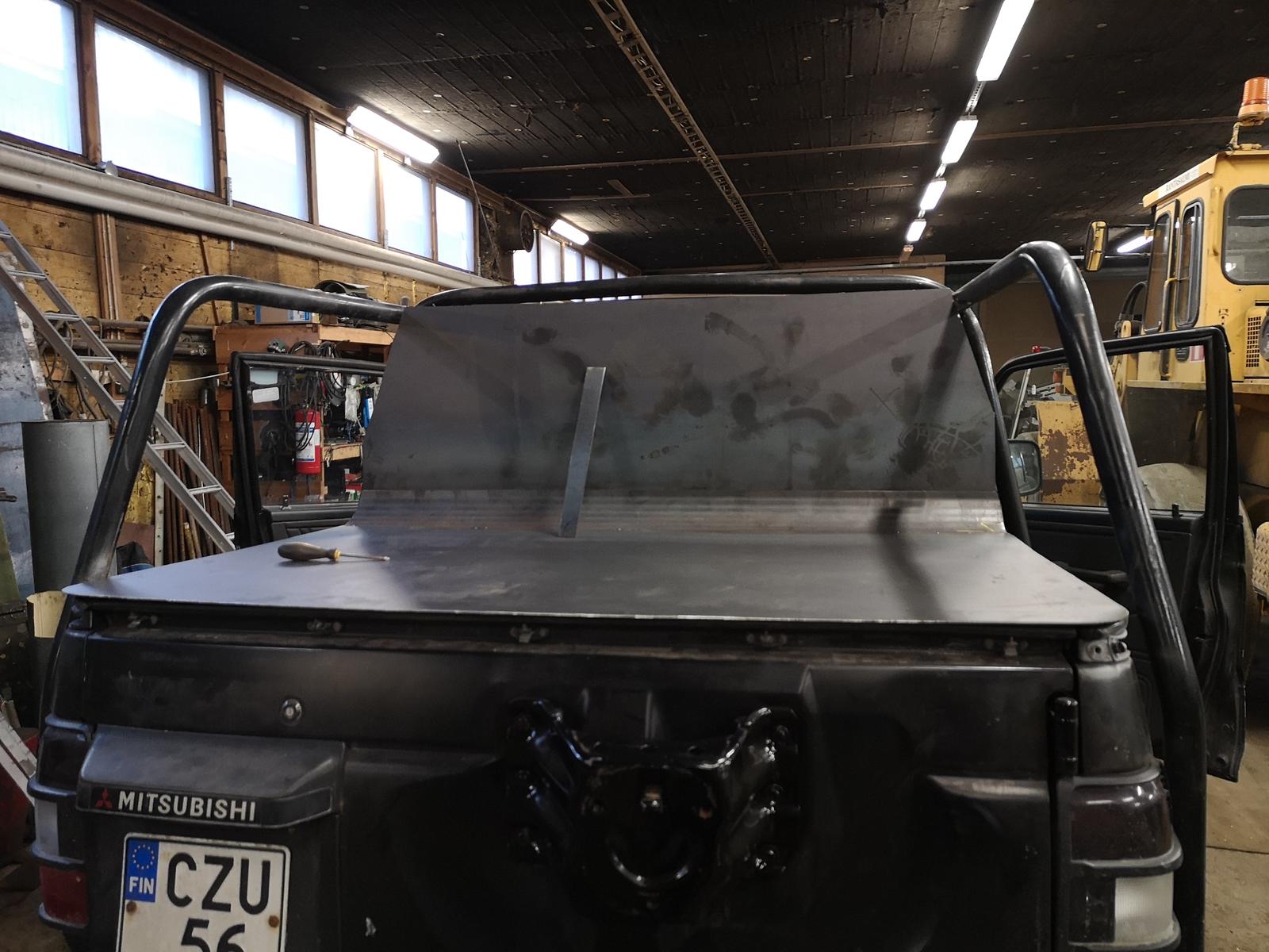 Näppärä projekti! Takaikkuna vois olla kiva, jotain kalteria tai ritläähän se vaatis suojaks jos lavalla kulettelee tavaraa mutta näkyvyyden ja ulkonäönkin takia vois olla hyvä lisä semmonen ikkuna.