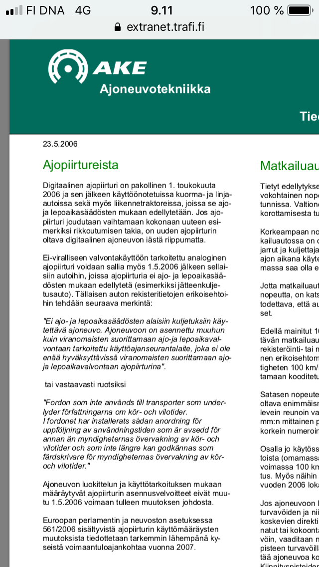 Joo asia on yksinkertainen. Laita sinäkin autoosi 1500. € digipiirturi ja tarkastus se 2 vuoden välein.