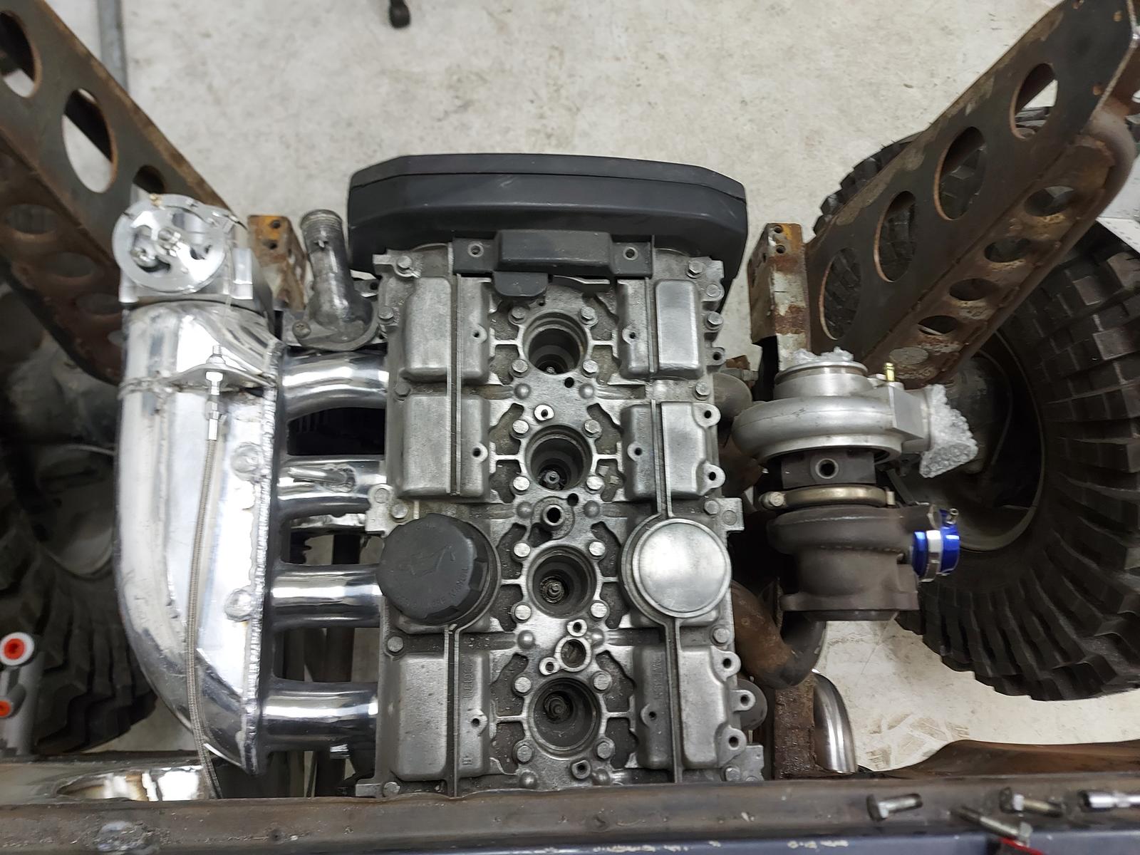 Ja tallin takana oottaa täysin toimiva moottori mikä on vielä autossa paikallaan.