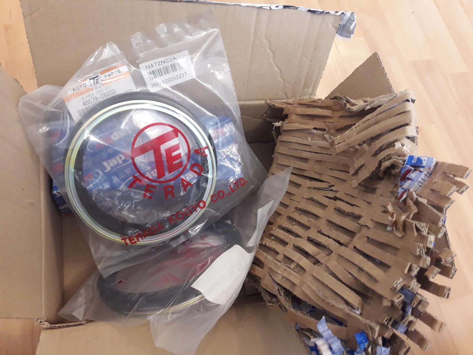 Välitys kait sopii pikku viilaamisella patrollinkin murikkaan. Osia taas tilattu. Kääntöpallon tiivisteitä, jarrupaloja, kenkiä, sylintereitä ja uudet rummut. |