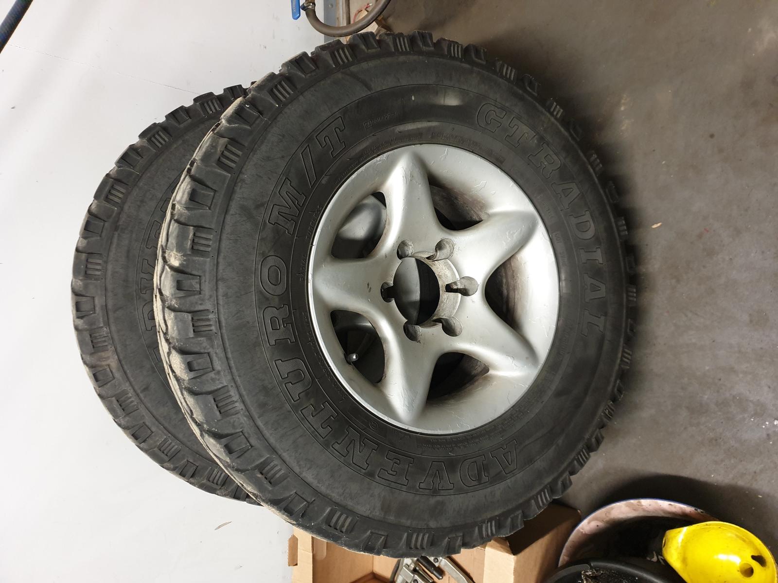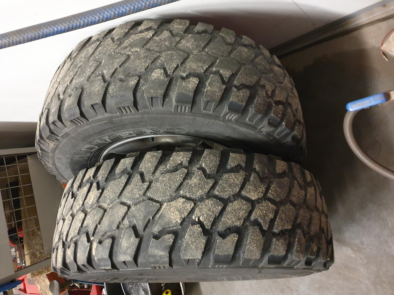 Moi, 31x10,5 R15 kokoisia löytyisi Jyväskylästä. Kuvanmukaisilla aluilla GT Radial Adventuro M/T, pintaa vaihtelevasti, kahdessa hyvinkin ja yksi huonompi. Mustilta peltivanteilta joutaisi myös nuo General Grapperit, joissa ei enää hirveästi ole pintaa ja yksi vuotaa tubeless-paikasta. Jo kiinnostaa, niin ole yhteyksissä: o4oo 232832