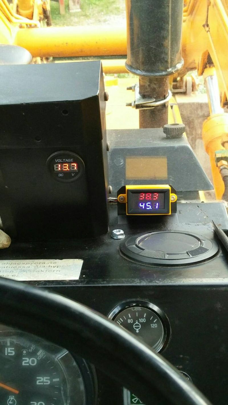Pieni ajelu ja koekaivuu. Hytissä edelleen helvetin kuuma. Kaivaessa ei lootan lämmöt juurikaan nouse. Ajaessa kyllä. Pienikin ylämäki näkyy heti mittarissa kun muunnin luistaa ja muuttaa dieseliä lämmöksi.